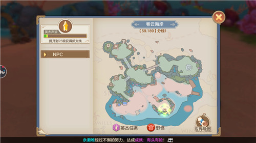 2、要触发这个隐藏任务“月与风”,需要先完成“卷云海岸”的全部英杰任务。