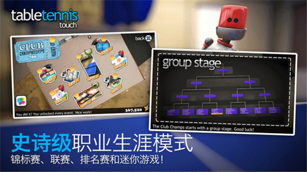 2、迷你游戏乐:13种独特的乒乓球挑战,包括半桌、保龄球、命中区。