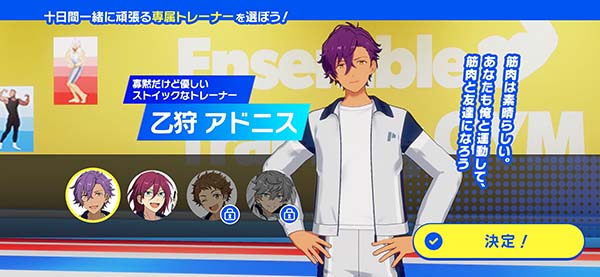 7、最后选择一位训练师,后面还通过每天锻炼获得肌肉币,可以用来解锁喜欢的明星教练。