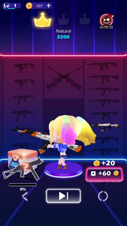 6、返回到游戏主页面之后,玩家可以重新选择歌曲进行闯关,也可以去商店中购买自己喜欢的枪支皮肤或角色皮肤等。