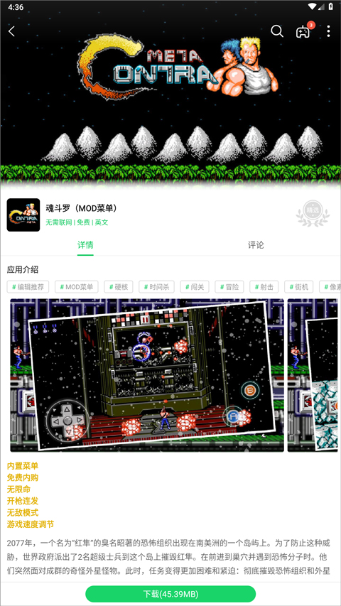 1、首先打开葫芦侠3楼游戏盒子,进入后找到一款带MOD菜单的游戏,点击下载;