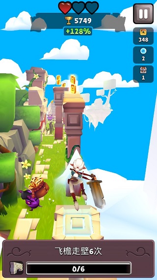 游戏玩法跟传统的跑酷游戏的操作大庭相径,大体上没有什么很大的改动,不过在很多细节上面发生了不一样的变化。这也让这个游戏充满了新鲜感和乐趣,一样使用滑动屏幕来控制人物的左右移动上滑和下滑,来代表的跳跃翻滚,不过有点不同的是在传统的跑酷游戏中,我们的后面是有怪物来追我们的,但是在《Blades of Brim》里面我们不是去躲避那些怪物而是要去击杀那些怪物。不过越玩到后面你会发现这些怪物就会变得越来越厉害,需要让我们几次攻击才能将他们杀死,所以在游戏中人物的装备也是非常的重要。