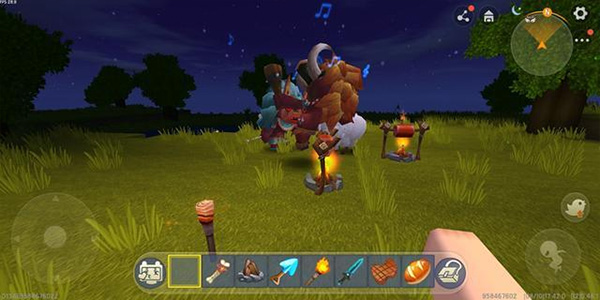 8、当夜幕降临时,我们需要将火把点燃在,这样我们才能看清附近的状态;