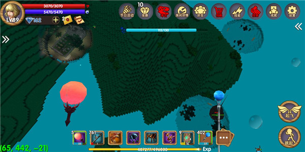 玩家进入游戏的时候可以先创建一个创造模式的世界,进入新建造的世界之后大家可以看到一个小房子,那是游戏中的固定出生点。玩过一段时间的玩家都知道游戏中有一个天空城,大多数人只有到后期等级较高才有能力去往天空城打怪。创造模式中玩家不需要考虑自己的等级直接点击起飞就行,大家可以运用这个模式了解到天空城。