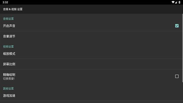 3、在音频设置里主要是设置声音、帧率和游戏加速等等