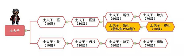 土夫子这一职业在游戏中升到10级之后有【土夫子·掘】和【土夫子·技】两条转职路线,具体的转职路线如下: