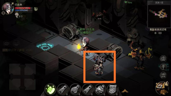 6、深渊里有一个如图的道具,在地图上和法阵是一样的标志,可以延时一分钟,总时间可以超十分钟,例如九分四十秒吃了一个道具,就会变成十分四十秒。