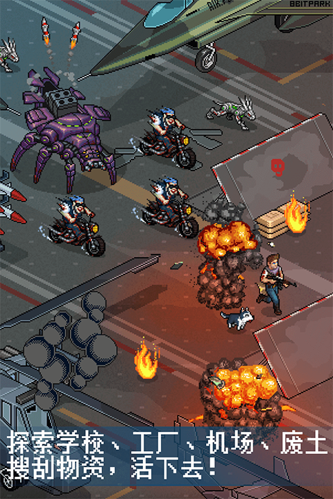 带上你的武器,开始闯荡像素构建的庞大废土世界。四处都游荡着丧失理智的怪物,它们在这片土地上肆意攻击和掠夺。而我们的目的很明确:横扫一切挡路的怪物,在这废土的世界,活下去!