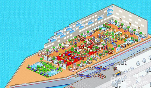 豪华大游轮物语最新版是一款商业经营类开罗游戏,在这儿玩家们将会拥有一个豪华大游轮,你可以驾驶着游轮载着乘客们去往世界各地,可以在大游轮上面建设各种娱乐设施、场所、餐厅、泳池等,让你的船成为世界上最豪华的游轮,吸引更多的顾客来到你的船上,打造一艘五星级大邮轮。随着游戏过程的推移,你可以获得越来越多的投资项目,有建筑投资、产业开发等等,甚至可以邀请国王,玩家需要合理安排资金,找准投资的时机,并在建造与投资中做好权衡,一步一步的将手上的豪华大游轮开往全球,各地成为风靡人物。除此之外,豪华大游轮物语游戏十分的休闲,不用肝,不用多费脑子,前期投资主要开拓客户层,强化物品都往餐厅、商店、和舞厅扔,注意商店是最赚钱的,香草对商店有奇效,因此你也要掌握住有必要的商机,揽得更多的顾客。