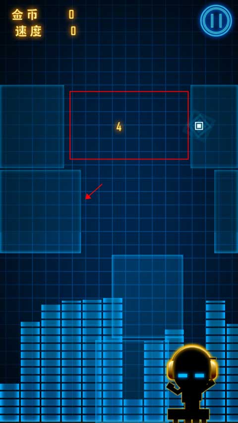 2、玩家需要根据方块从右向左移动时,像方框明亮的地方是不能点击屏幕的,而红色框框选中的区域则可以点击,连续点击则会显示金色条纹。