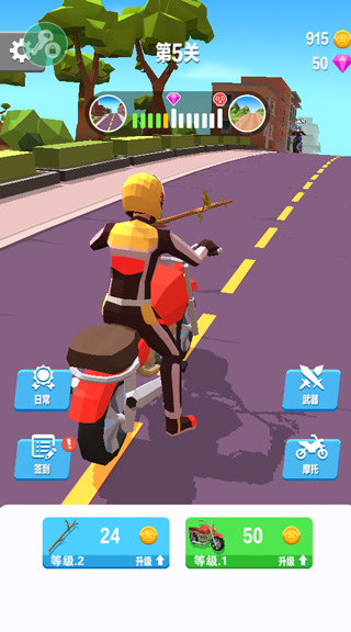 暴力飞车单机版是一款非常劲爆刺激的3D单机摩托车赛车竞速游戏,以经典的ip《暴力摩托》为原型,创新的将赛车驾驶与道具竞技玩法相互结合,原汁原味的血腥与暴力冲突,极速狂野般城市竞速对决,带给你无比畅快的赛车竞速游戏体验。游戏中玩家将驾驶着摩托车和其他竞争对手在城市公路之间展开一场紧张而又刺激的竞速比赛。同时,玩家可以收集树枝、铁棒、锤子、机枪等武器来进行战斗,驾驶摩托车靠近敌人后自动进行攻击,十分刺激。另外,暴力飞车游戏支持经典闯关和生死竞速两大模式,配备大量炫酷的摩托车可供你收集解锁,轻度休闲的赛车改装,简单容易上手的赛车竞速玩法,搭配上各式各样的道具,让你近距离享受赛车狂飙带来的无限激情。