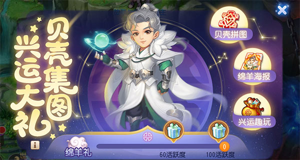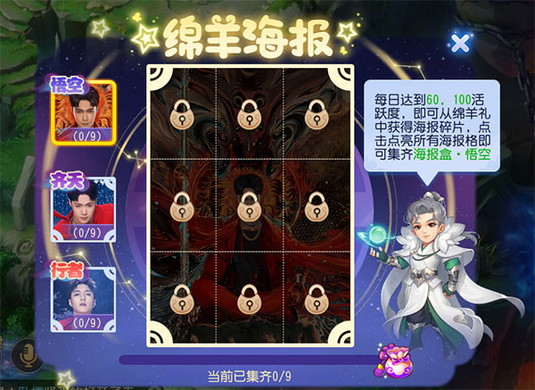 绵羊海报:少侠每日活跃度达到60及100时,皆可领取随机种类绵羊海报盒,可开启获得海报碎片,参与集成海报活动。