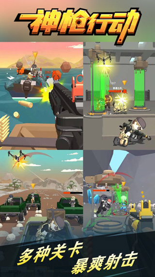 神枪行动是一款非常好玩刺激的射击闯关类游戏,采用了卡通的风格设计,画面精美细腻,操作易上手,还包含了海量了枪支武器供玩家选择,拿起武器加入到战斗中来,利用自己精准的射击技巧,将敌人通通的消灭,趣味性十足。游戏中拥有神枪手,你需要