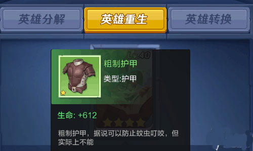 在玩家点进英雄界面后,可以在等级上方看到一个重生的图标,点进去就可以进入重生的界面了。重生可以用于返还升级素材,但前提是重生的英雄等级必须大于一级。