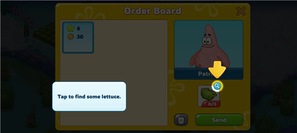 9、点击找到我们可以看到派大星栏下需要一些生菜;