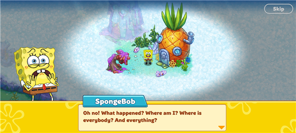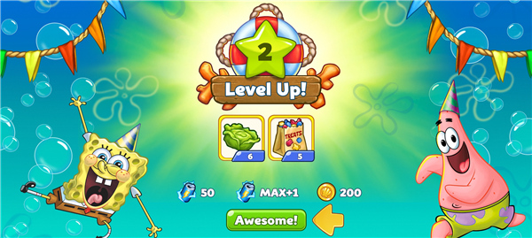 1、海绵宝宝冒险果酱世界,是一款休闲的养成冒险游戏。