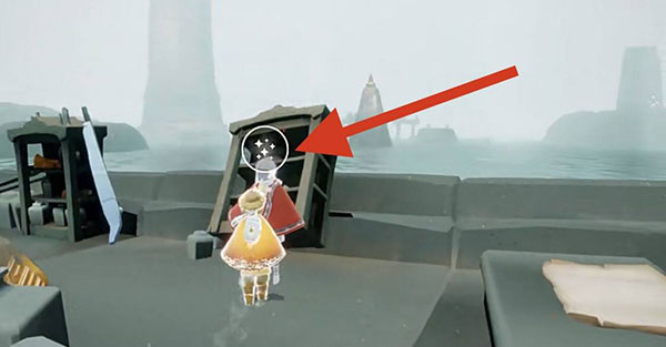 1、到达潜海季的入口之后,起飞飞向入口的左前方的位置,可以看到一艘小船,小船上会有潜海季的向导先祖。