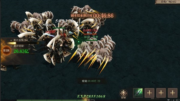 【玩法说明】恶魔广场内每击杀一个怪物都能给勇士带来大量的经验,副本内获得的经验受到经验药水、小熊猫经验buff的加成。恶魔广场是游戏内获得经验快速升级的绝佳途径。