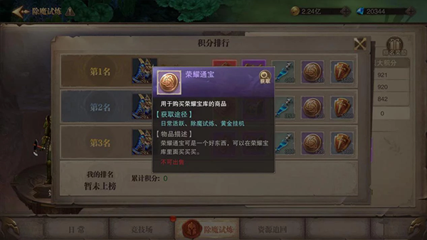 荣耀通宝道具是用于荣耀宝库的商品,可以通过日常活动,除魔试炼活动,黄金挂机活动。