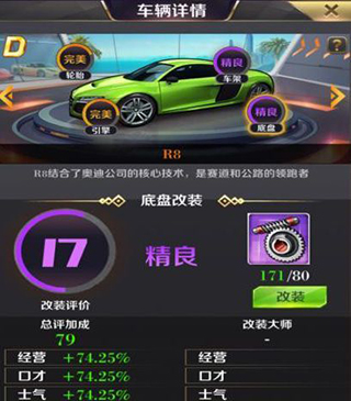 8、车辆等级提升比对人才实力影响大,培养规则也是一样,集中投资你手上最强的车辆即可,并且达到30级后还可以进行改造,前期靠一辆橙车就能打天下了。