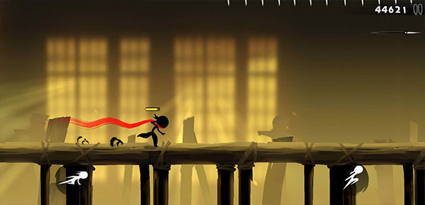 首先忍者考试这个关卡的难度并不是很大,因为到这个关卡位置都没有需要玩家们进行攻击的boss,所以这一关卡的关键通关点还是在于需要玩家们用技巧去躲避障碍物。这一关的前半段路程当中主要是由钉柱子和断崖组成,在上面的钉子快要扎到玩家们呢的时候玩家们应该快速使用左边的提速按键,这样能够让玩家们快速通过障碍物,但是这里需要注意的是不能够长按提速,因为这个技能只能一段一段的按,如果长按的话难么角色就会停在原地一段时间会被卡在障碍物的墙壁当中。