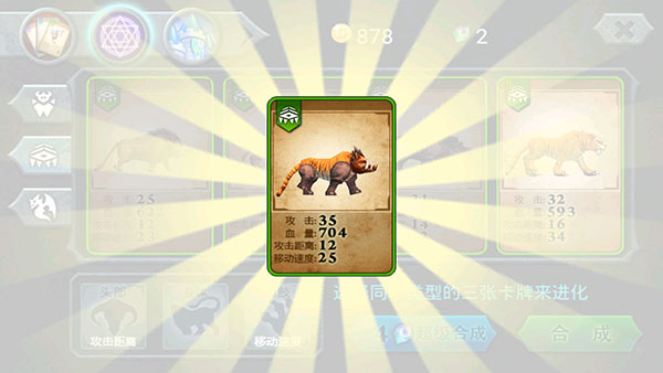 3、进入卡牌选择界面,挑选本局要上阵的猛兽卡牌;