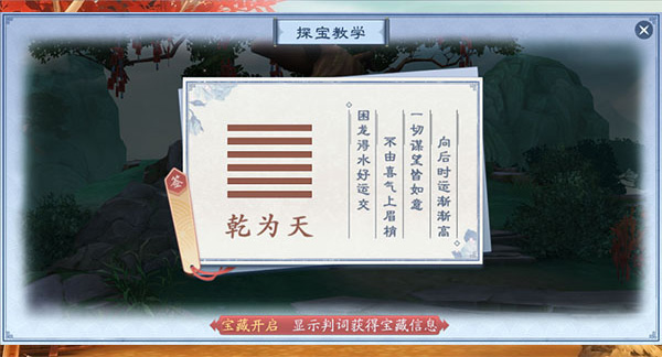 ①宝藏挖出时会触发卦象,这时候就要看各位少侠的运气啦!可以先洗洗手再挖。