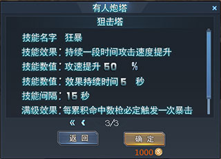 特色攻击高,但攻速较慢,技能和机枪塔一样。