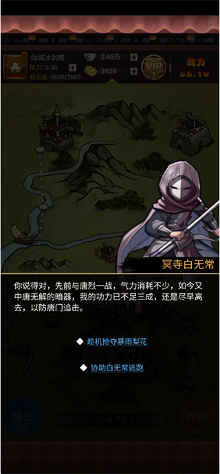 帮邪派,最后打无涯,对手二百多万战力。比较容易过。然后两个选项我选择了撤退。得离火玄心镖。
