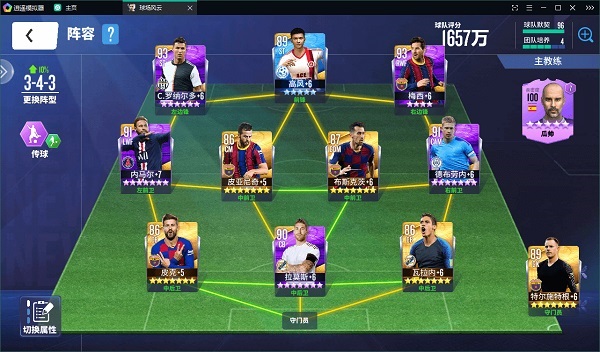 此套阵容缺点正好和皇马相对,前锋众多,缺少后防,需要用碎片强化巴萨后防线。