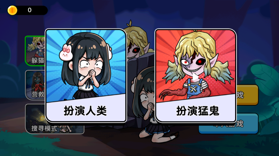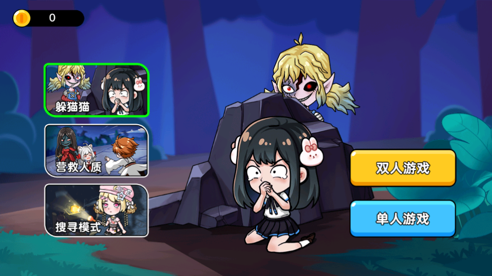 1、在本站下载安装好恐怖冒险躲猫猫,运行游戏,有躲猫猫、营救人质、搜寻模式等;
