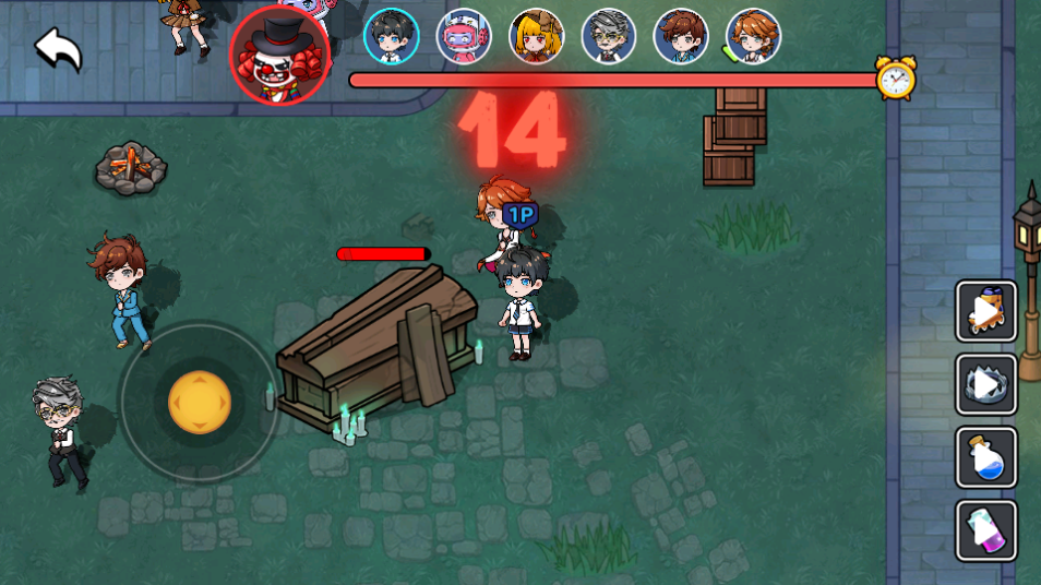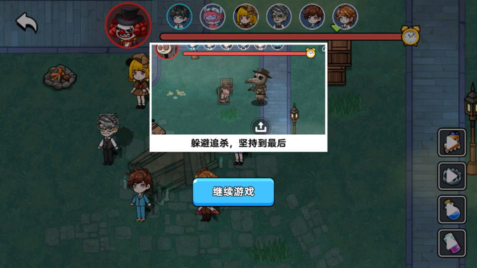 3、每一回合限时进行,时间结束后根据存活人数与任务完成度判定胜负。