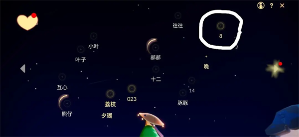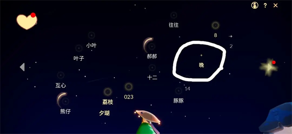 在这里可以每日给好友送心火,送心,赠送状态会在星图上有不同的显示状态