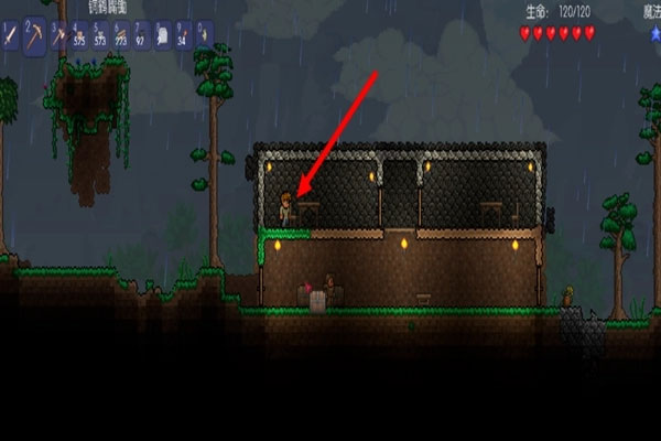 1、首先搭建一个战斗平台,最好在npc居住的环境之上,宇宙之下,长度最好超过100格(有助于后期打新三王中的魔眼和硬长直);