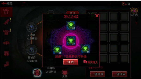符文系统是灵活多变的,前期资源不够的时候可以先上点低等级符文带着,千万别把符文槽空着,这样很亏,后面慢慢符文多了后就可以取下来合成更高级的,三个同样等级同属性的符文可以免费合成更高一级的符文,合成不需要手续费且百分百成功率!