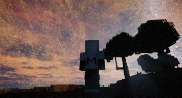 于是果断切换到创造,开启光影,/time set night,在黑夜的笼罩下,或许能看明白这究竟是个什么鬼天气!