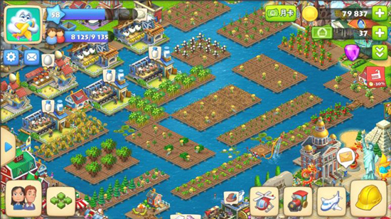 4、使用多种社区建筑和装饰来打造你的梦想小镇。