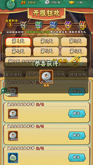 3、开服欢不要参加:从玩家进入游戏开始就会激活开服狂欢,每天都有不同的任务也有不同的福利可以购买和领取,开服狂欢中的超值抢购最好购买,当然这要根据个人的喜爱而言。
