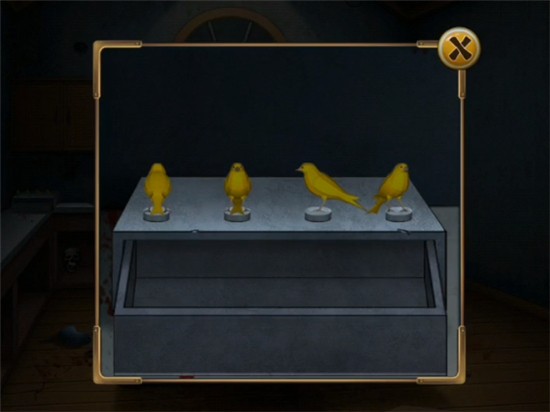 别着急,还记得小编最早就说那些鸟画吗,最后要用到的。记不住重新去看一遍,这个屋子最左面就是壁橱下方的那个鸟朝向的密码盒你就能够解开了,里头会得到一个齿轮之类的道具,然后再点墙上影子中红色的地方,使用这个道具(感觉可以叫齿轮之眼,有格调),墙上出现一个小口,点开发现里头都是瓶子,上面标注了姓名,里头装着眼睛。