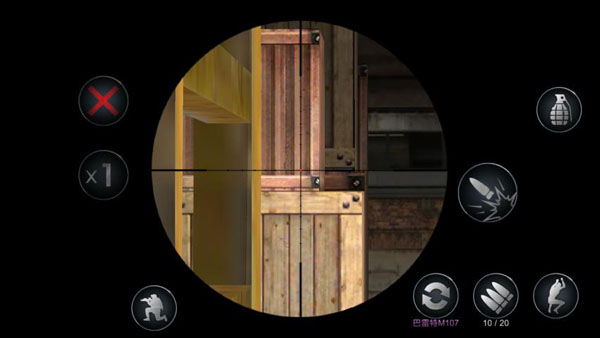 玩家在使用狙击枪时大致操作位置相同,在点击射击按钮后进入开镜模式,开镜模式下右侧会显示开镜的倍数和退出开镜模式的按钮。同时普通模式的按钮全部保存,玩家可以随心所欲的操作。