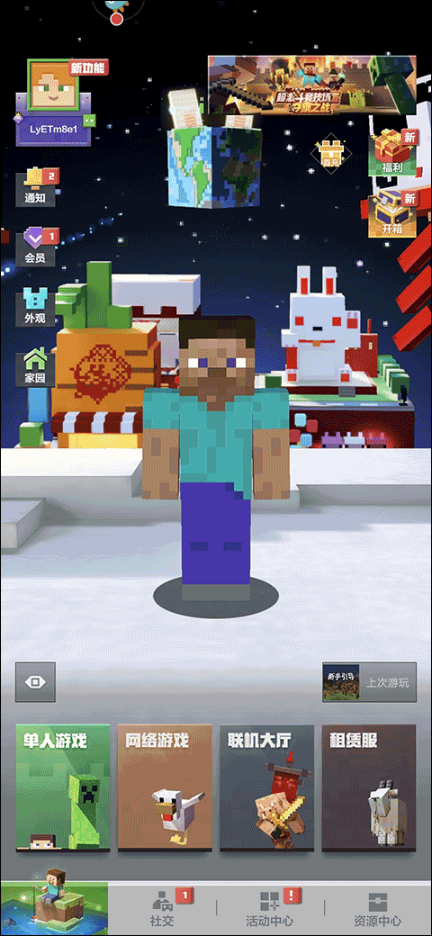 3、回到游戏的主界面,玩家可以在这里游玩单人、多人和好友一起联机,甚至还可以在租赁服畅玩;