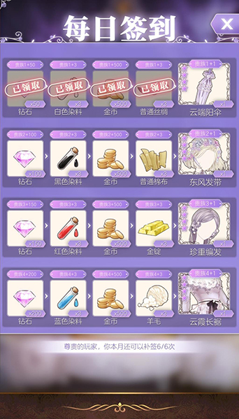 ②每日签到获得的钻石,随着每个月天数的增加,获得的钻石数量也会增加,如果是VIP那么奖励会翻倍(比如没有加成的时候是150,有vip就变成了300)