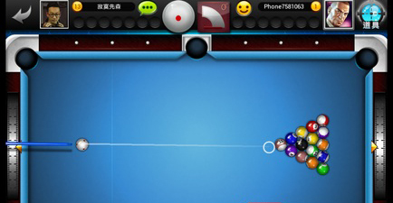 拖动球杆,调整球杆的位置,调好之后点击屏幕就可以确认方向。然后向球杆的反方向拖动,就可以看见有一个红色的力度条,这里就可以调整好你的力度,确认之后松开手指,就可以将球击出去了