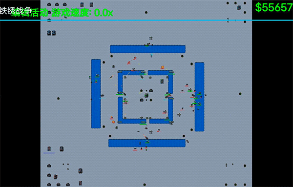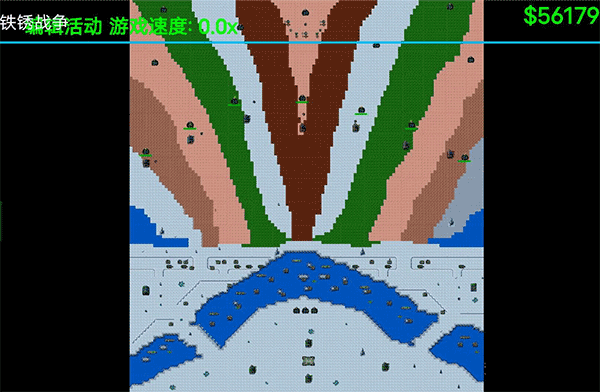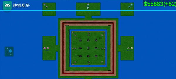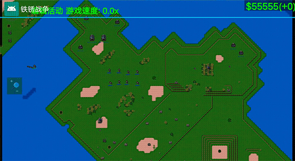 2、铁锈战争官方正版地图广阔采用像素画风打造,上帝视角观察不同区域;