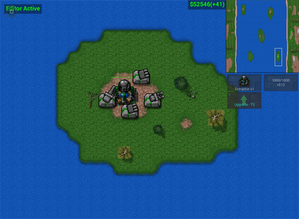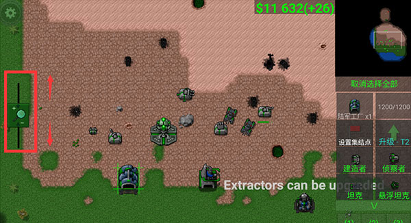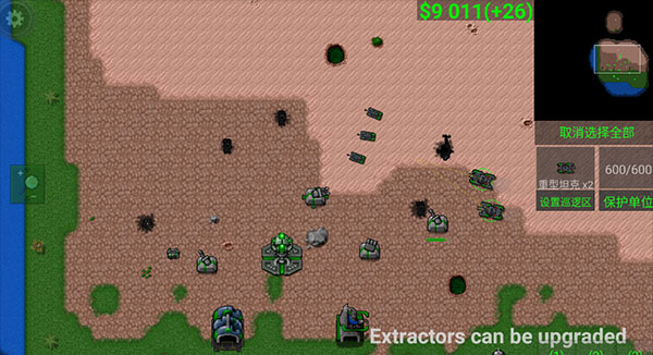 游戏最重要的是资金,我们现在只有少的可怜的资金,怎么办呢?当然是找一个黑漆漆的大坑,然后让建造车在上面建资金提取器,钱就开始源源而来了,可升级,建议初期就升。