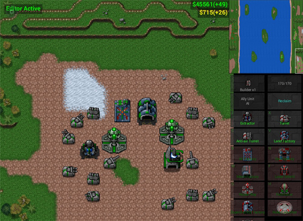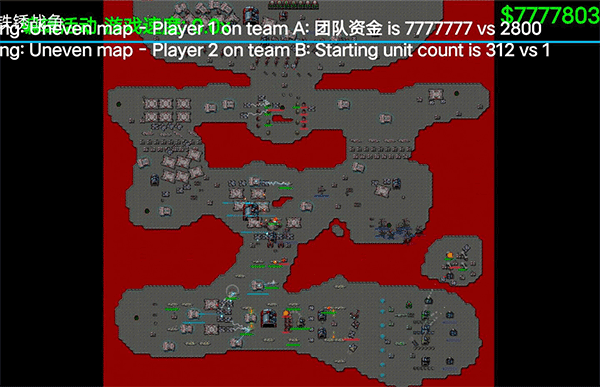 玩家开局$55000+基地+建造者(8个)+悬浮坦克(12个)+t2机枪炮塔(8个)+防空炮塔(8个)