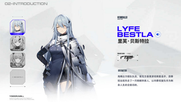 海姆达尔部队队员,前瓦尔基里游戏明星选手。热情洋溢的偶像士兵,视里芙-贝斯特拉为宿命对手。