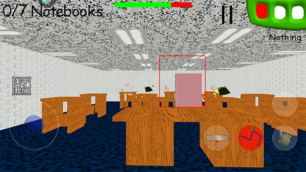 一个有限的无形/相位能力,因为 Baldi 可以在不打开门的情况下穿过门并滑过桌子,但不能穿过学校的墙壁。玩家还可以在游戏开始时直接穿过巴尔迪。