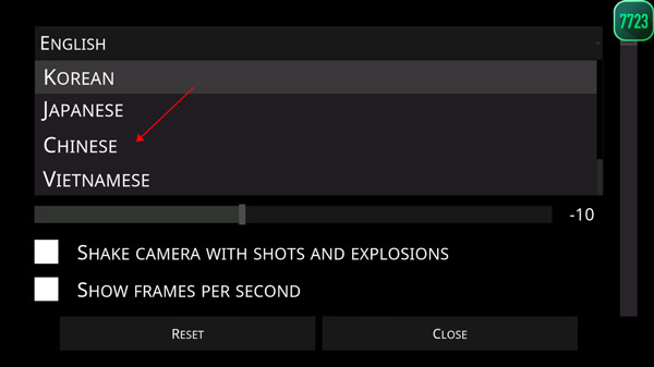 2、可以看到现在显示的是English,点击下滑到Chinese,选择即可