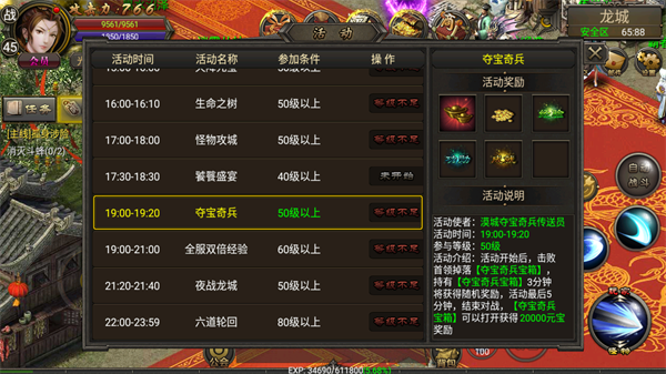 2、内置丰富的开服活动,完成指定任务即可领取海量奖励。